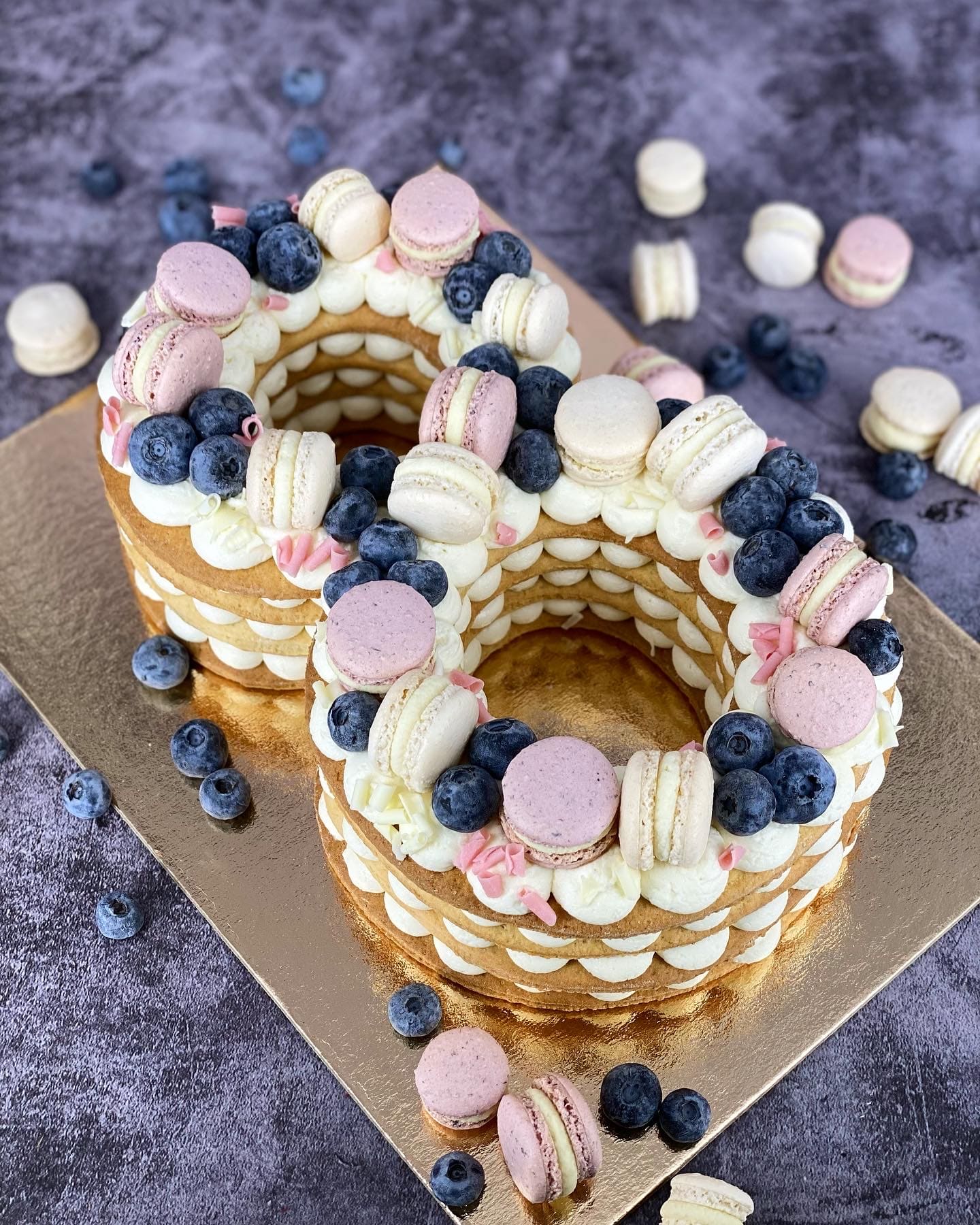 Как уже было сказано, торт-цифра без украшения уже выглядит довольно красиво и за счет интересной формы коржей и нежного творожного крема. Однако, такие торты – это настоящее поле для творчества.